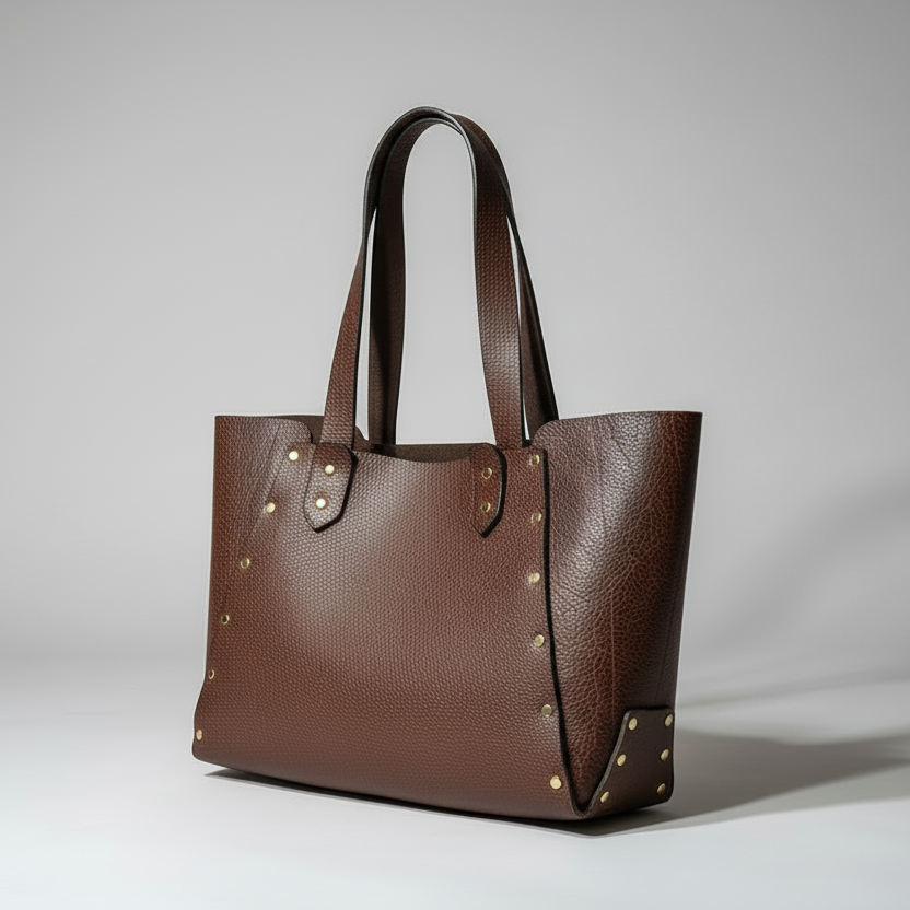 Add a touch of elegance and sophistication to your outfit with this large, genuine buffalo leather tote bag featuring brass hardware. Perfect for carrying all of your essentials in style, this bag is versatile, trendy and is large enough to carry your laptop or tablet and still provide more than enough room for your necessities as well as the current bestseller you're reading. Handcrafted with care and built to last, this all leather tote is a must-have accessory for the busy fashion-forward commuter. Treat yourself or gift to someone special!