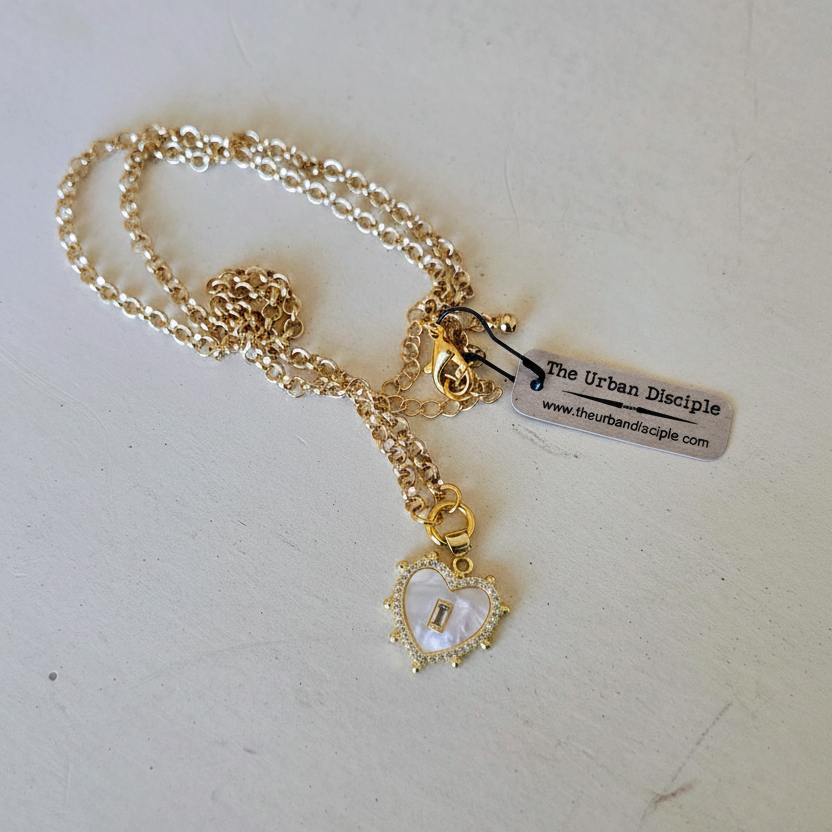 Fall in love with the details! This petite Heart Necklace features a beautifully balanced 18" gold-tone rolo chain that’s bold yet feminine. The heart-shaped pendant is a stunning focal point—crafted from luminous mother of pearl and framed with a delicate sparkle of Swarovski® crystals.